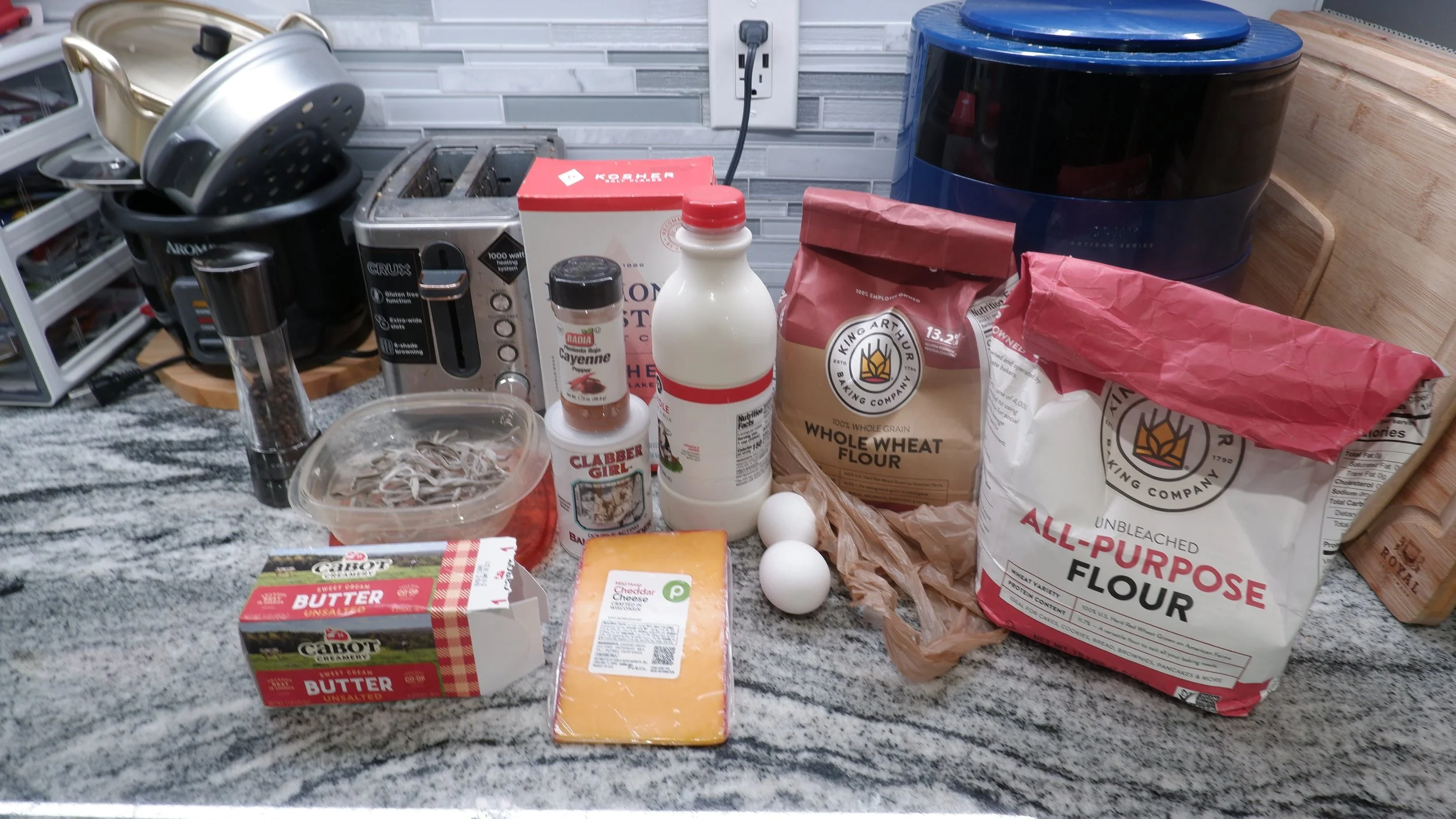 As I just mentioned, I accidentally used sage instead of rosemary. I bought it fresh and used my air fryer to dehydrate/dry it. Other than that, I didn’t leave anything out. I should say that the cheese that you use will be important in how the cheese dough/batter comes out. I used a mild hoop cheddar, but maybe use a sharper cheddar if you want a cheesier result.